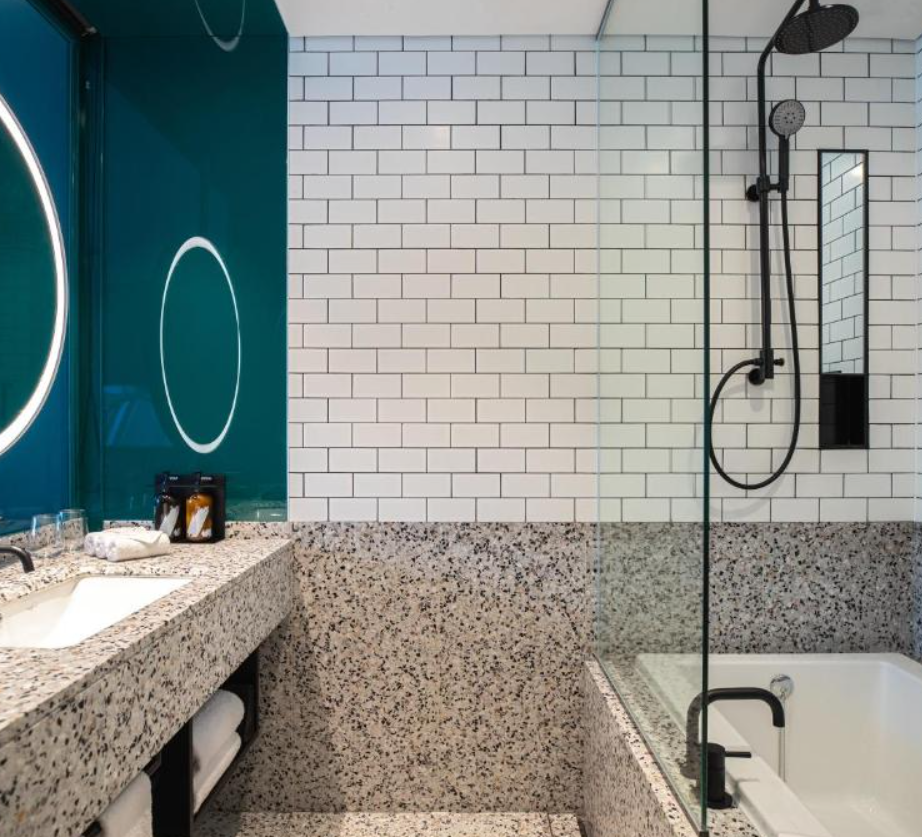 Rooms: A variety of room types feature inspiring design and comfortable amenities. Some rooms feature two double beds, perfect for families of four, and include amenities such as a Bluetooth speaker, a safe, and a bathroom with a walk-in rain shower. To help protect the environment, we provide refillable amenities and glass water bottles instead of disposable items.
